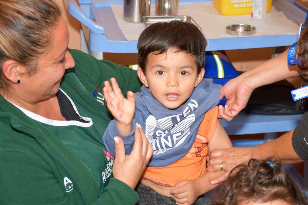 Con el objetivo de adelantarse al invierno y fortalecer la protección de la comunidad, el Hospital San José de Casablanca desplegó esta mañana un punto de vacunación contra la influenza en el jardín infantil Papelucho.